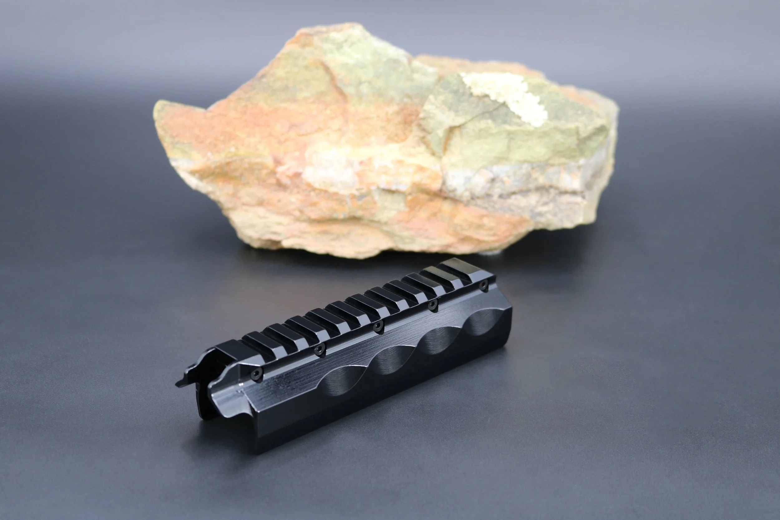 Mountain Metal GK1 Picatinny Barrel Brace pins into the third slot of either shroud bracing the barrel shroud and air tank together. It also provides a 3-slot picatinny for accessories like a bipod or flashlight. All our products are 6061 aluminum, designed, machined, anodized, and etched in-house.